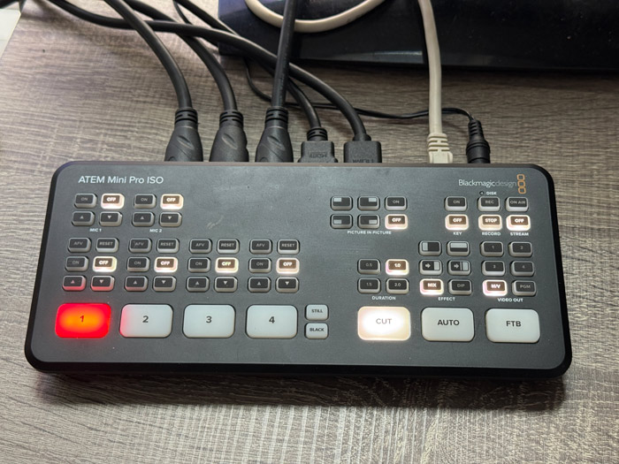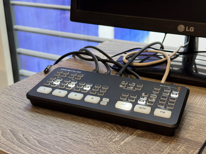 The multi‑camera setup and ATEM switcher are stream‑ready. Streaming to platforms such as YouTube, Facebook or LinkedIn can be arranged as an add‑on.